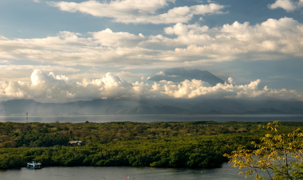 - Views of Ceningan Channel and Mt Agung